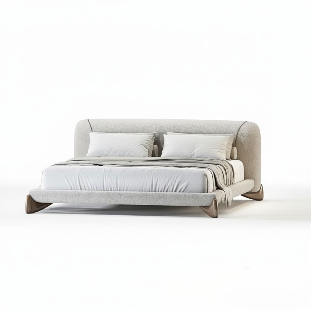 الخامات: مغطى بقماش مخملي أو قطيفة فائق النعومة (Velvet/Suede-like fabric)، يضفي إحساساً بالفخامة والدفء.